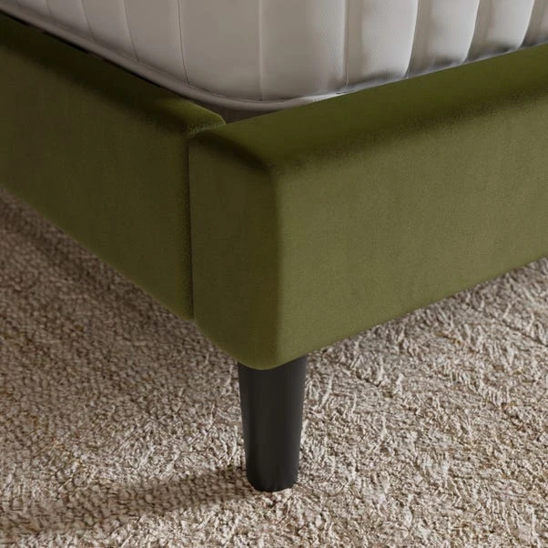 Crafted to redefine comfort and style, this bed exudes opulence through its lavish velvet upholstery and inviting pillow-back design. Its sophisticated aesthetic seamlessly blends contemporary elegance with comfort, creating a stunning focal point for your sleep space.