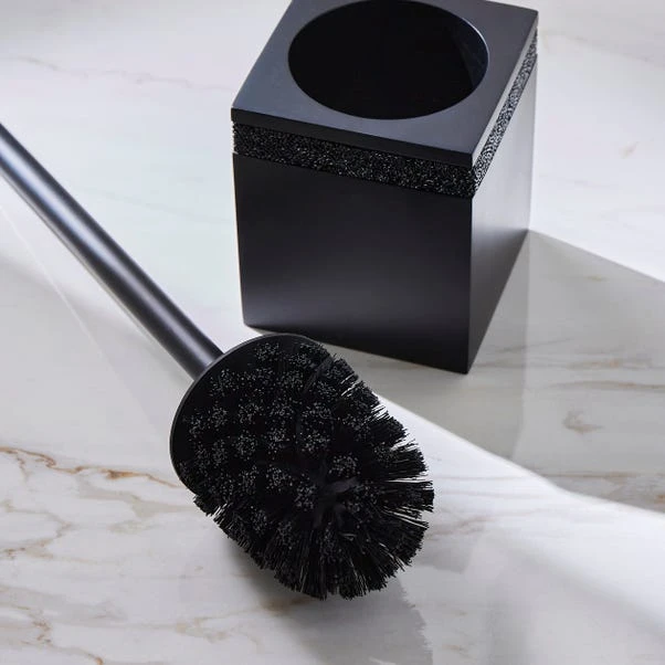This Sparkle Black Square Toilet Brush brings style and sparkle to an otherwise functional item with its sleek black finish and sparkle trim. Made from durable resin which is easy to clean, this is a great way to add contrast to your bathroom. Matching items are available to create a coordinated scheme.