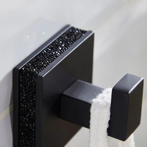 This single towel hook is a super stylish way to keep your towel organised and close at hand. Easily wall mounted, the black square finish and subtle sparkle design is a great way to introduce contrast and style to your bathroom. Other items are available in the range to take the look further.