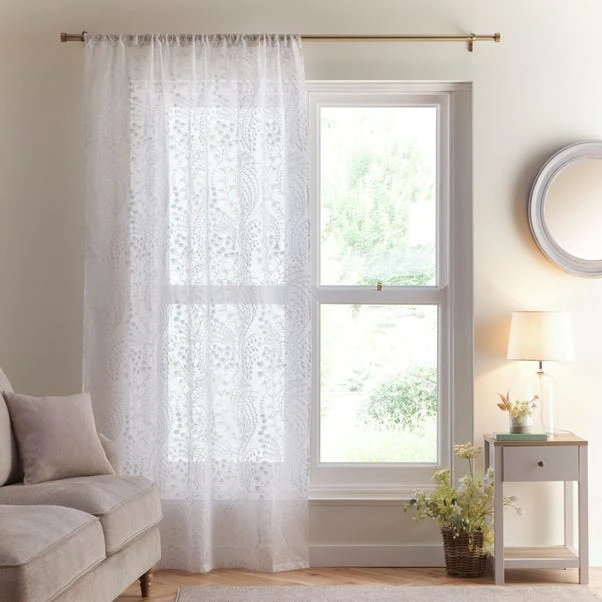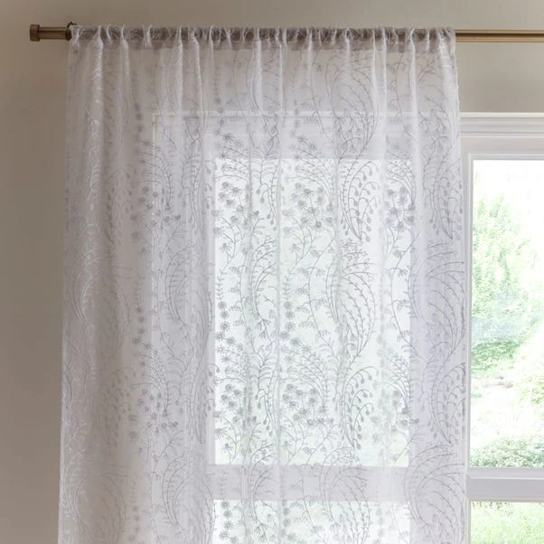 A beautiful embroidered floral trail which brings a sophisticated design and look to any room. The Spring Flowers sheer fabric allows light to flow into the room whilst the embroidered pattern provides privacy for your home. This panel has an easy to hang slot top header so there’s no fuss when it comes to fitting it. Machine washable for a quick and convenient refresh.