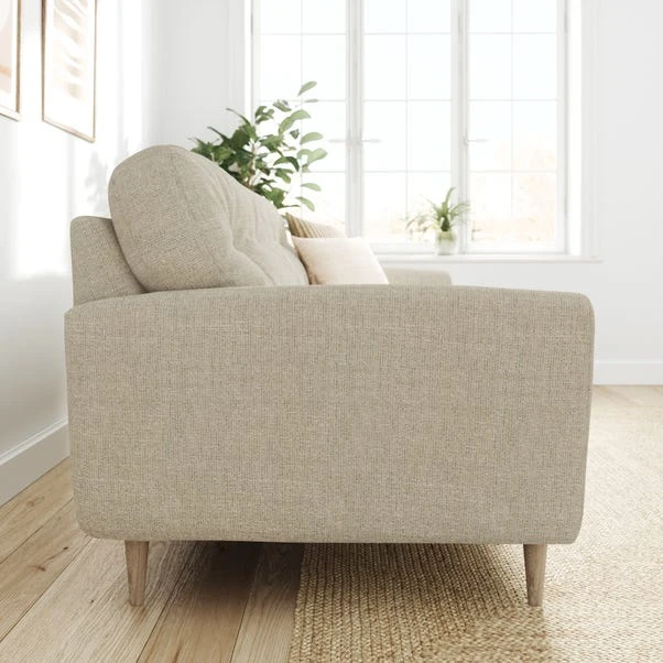 Upholstered in a textured fabric, this sofa’s soft texture invites relaxation while adding a touch of elegance to any room. Its generous size provides ample seating for family and guests, making it the perfect centerpiece for social gatherings or quiet evenings at home.