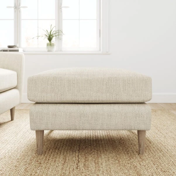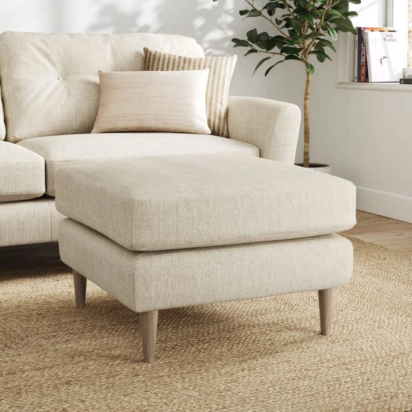 This classic piece brings a touch of elegance to any room, wrapped in textured fabric that feels as good as it looks. Its soft colours and sleek design make it a standout addition to your living space, perfect for propping up tired feet or adding a chic accent.