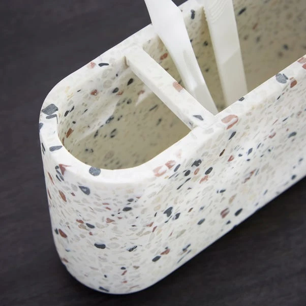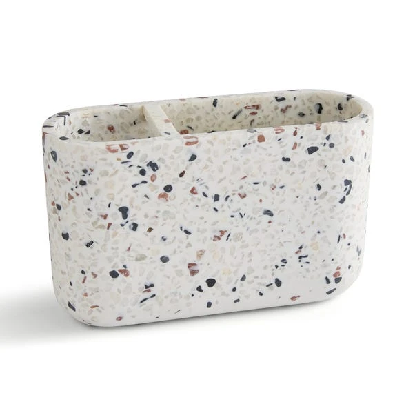 Crafted from reused resin, this toothbrush holder features a super chic design perfect for storing household toothbrushes. Corresponding items are available to complete your bathroom ensemble. This series, made of recycled resin materials with small pebbles added inside, showcases a unique terrazzo design that imparts a high-end, natural feel.