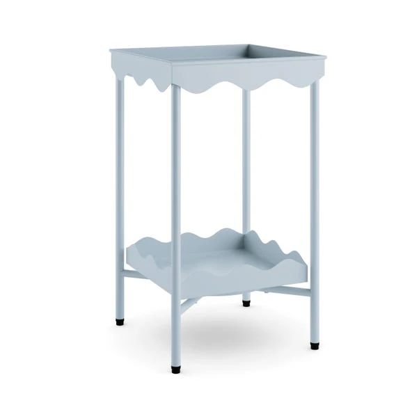 The Tula Square Side Table in Air is a modern, stylish addition to any space. Featuring distinctive wiggle-edged detailing on its square top and a sturdy metal frame, it combines contemporary design with functionality.