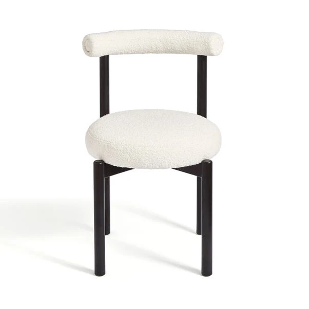 Featuring distinctive boucle fabric upholstery, this chair effortlessly adds elegance to your dining space while offering a soft, luxurious feel. Crafted with a solid and durable metal frame, it ensures long-lasting stability and reliability. The ergonomic high-back design provides exceptional support, making it an ideal choice for extended meals or gatherings, where comfort meets style for an elevated dining experience.