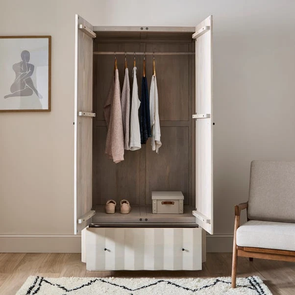 This wardrobe combines ample storage space with practicality, featuring a spacious hanging area and a convenient drawer for additional organisation. With its sleek silhouette and versatile finish, it effortlessly complements any bedroom decor style.