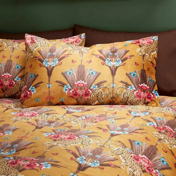 Indulge in modern luxury with this duvet set showcasing a contemporary leopard print design that exudes the allure of the jungle. Its easy-care properties make maintenance effortless, allowing you to appreciate its fashionable allure without worry. The luxurious velour handle offers a sumptuously soft and indulgent feel, elevating your bedroom decor to new heights of sophistication and comfort.